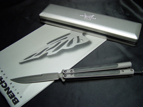 Because this section is so large, I have chosen to forego the thumbnails here and just list my balisongs in text form. If you would like to see the thumbnail page (dialup users beware), then you can click here. In any case you can click on a specific model to see more information about it. This will open up a popup window so you may need to allow popups for this site. Due to the large number of Benchmade balisongs and their popularity, I have chosen to list the Benchmades first.